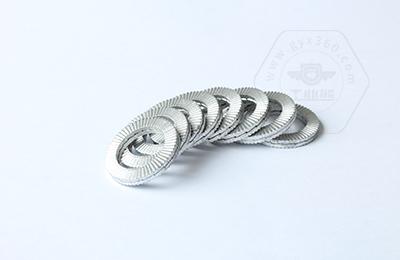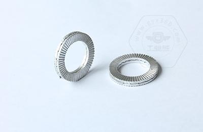 | DIN25201雙疊自鎖墊圈的原理:獨(dú)特的墊圈內(nèi)側(cè)斜齒面傾斜角度 α 大于螺栓螺紋傾斜角度 β 。 裝配時, 內(nèi)側(cè)斜齒面是相對的, 墊圈外側(cè)放射狀的凸紋面 (外滾花齒面) 的摩擦系數(shù)要比內(nèi)側(cè)斜齒面 的摩擦系數(shù)大, 且與兩端接觸面成咬合狀態(tài)。 當(dāng)連接件受到振動, 并使螺栓發(fā)生松動趨勢時, 僅僅允許兩片墊圈內(nèi)側(cè)斜齒間相對抬升錯動, 產(chǎn)生擡升張力。 獨(dú)特的齒牙系統(tǒng)利用張力在緊固的 連接處產(chǎn)生壹個很高的抵抗力來經(jīng)受振動力,從而達(dá)到 100% 的防松效果。 |
