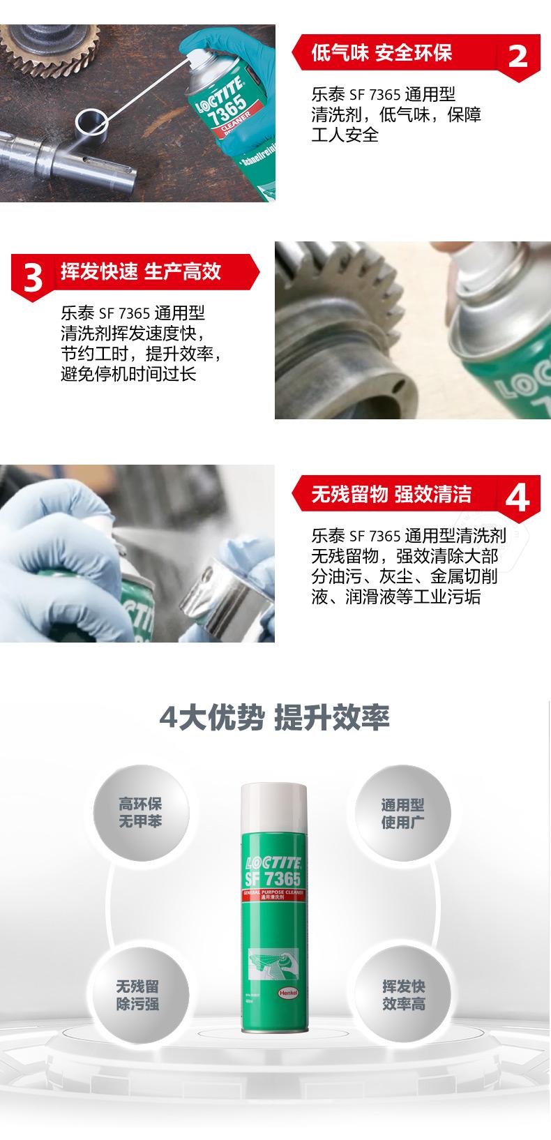 樂泰SF7365通用型清洗劑是一款高性能、環(huán)保無甲苯的零部件清洗劑。樂泰SF7365通用型清洗劑低氣味,使用更安全;樂泰SF7365通用型清洗劑揮發(fā)快,可節(jié)約工時、提升效率。對于油污、灰塵、金屬切削液、潤滑液等工業(yè)污垢,樂泰SF7365通用型清洗劑可實現(xiàn)無殘留強(qiáng)效清潔,適用范圍覆蓋電廠、礦場、石化、鋼鐵、紡織、水處理、造紙和食品加工行業(yè)。